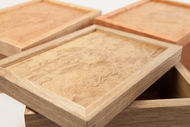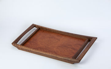 These trays were completed during my apprenticeship with Pat Megowan, using local Pacific Northwest woods, madrone, curly western maple, cherry and walnut. Hidden handcut joinery connects the tray forms, and is paired with the veneered bottoms.